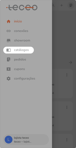 2. no card do catálogo, clique no ícone para compartilhar o catálogo via whatsapp, e-mail ou link.