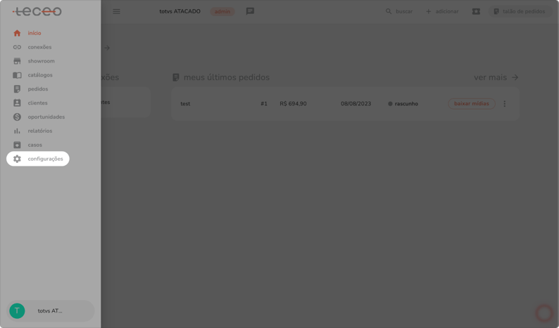 a) no menu lateral, selecione configurações.