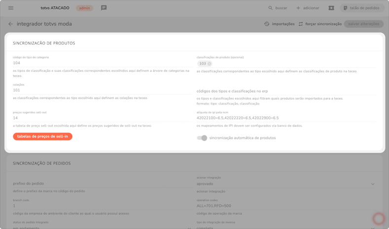 neste módulo, você configura o fluxo de recebimento e atualização de informações dos produtos entre os sistemas.