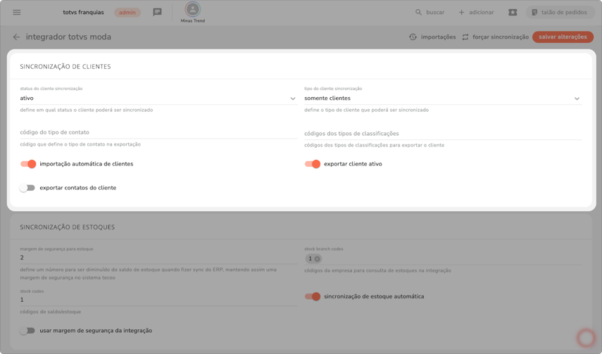 módulo dedicado à integração dos cadastros de clientes, permitindo a importação, exportação ou sincronização bidirecional.