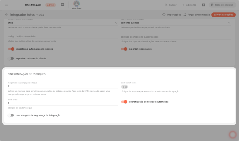 nesta seção, você define como será gerenciada a sincronização dos saldos de estoque entre os sistemas.